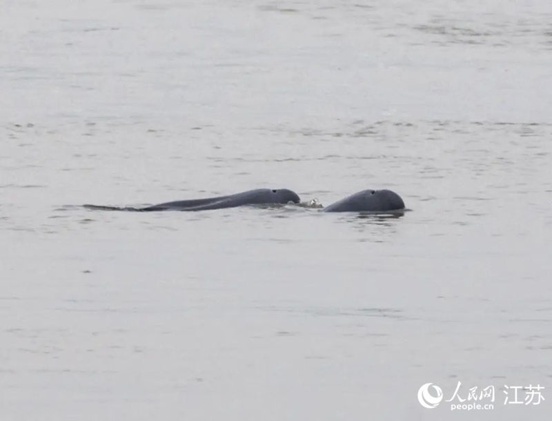 在南京长江新济洲国家湿地公园拍到的江豚。人民网记者王丹丹摄